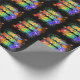 This fun and lively birthday-themed wrapping paper design has the message "HAPPY BIRTHDAY, LAURIE" having a colourful rainbow spectrum inspired gradient pattern, and an exciting bursting celebratory fireworks inspired background pattern. Colourful wrapping paper like this might be used when wrapping birthday presents/gifts that are being given to somebody named Laurie. [~Z0000456]