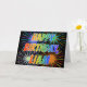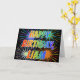 This vibrant, multicolored and fun birthday greeting card design features the message "HAPPY BIRTHDAY," and the common first name "LIAM" with the letters having a colorful rainbow spectrum like gradient coloring pattern. The background of the front also features a colorful bursting fireworks inspired pattern. The inside features a customized greeting message, or could perhaps be cleared and left blank if a message is to be written by hand instead. A birthday greeting card like this might be a fun way to acknowledge the birthday of somebody named Liam. [~Z0000350]