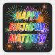 First Name "MATTHEW", Fun "HAPPY BIRTHDAY" Square Sticker