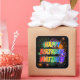 This lively and vibrant birthday-themed sticker design features the message "HAPPY BIRTHDAY, MATTHEW" having a colourful rainbow spectrum inspired gradient pattern, and an exciting bursting celebratory fireworks inspired background pattern. Vibrant stickers like this might be given as a birthday present, or used while wrapping presents/gifts, or used as a birthday party decoration when celebrating the birthday of somebody named Matthew. [~Z0000457]