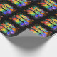 This fun and lively birthday-themed wrapping paper design features the message "HAPPY BIRTHDAY, OWEN" having a colorful rainbow spectrum inspired gradient pattern, and a vibrant bursting celebratory fireworks inspired background pattern. Exciting wrapping paper like this might be used when wrapping birthday gifts that are being given to somebody named Owen. [~Z0000456]