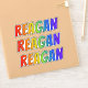 This exciting, multicolored, and vibrant sticker design features the common first name or given name "REAGAN", with the letters of the name featuring a colourful rainbow spectrum like gradient colouring pattern. It might be a fun present to give to somebody whose first name is Reagan. [~Z0000361]