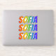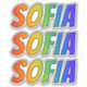 This vibrant, fun, and multicolored sticker design features the common first name or given name "SOFIA", with the letters of the name having a colourful rainbow spectrum like gradient colouring pattern. It might be a fun gift to give to somebody who is named Sofia. [~Z0000361]
