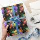This fun and lively birthday-themed wrapping paper design has the message "HAPPY BIRTHDAY, STACEY" having a colourful rainbow spectrum inspired gradient pattern, and a vibrant bursting celebratory fireworks inspired background pattern. Vibrant wrapping paper like this might be used when wrapping presents being given in celebration of the birthday of somebody named Stacey. [~Z0000456]