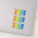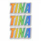 This multicolored, vibrant, and fun sticker design features the common first name or given name "TINA", with the letters of the name featuring a colourful rainbow spectrum like gradient colouring pattern. It might be a fun present to give to somebody named Tina. [~Z0000361]
