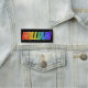 This fun, vibrant, multicolored name tag design features the common first name "WILLIAM", with the letters of the name having a colourful rainbow spectrum like gradient colouring pattern, on a black coloured background. A nametag like this might be worn by a volunteer, a staff member, or an employee whose first name is William, to help identify the wearer to others. [~Z0000344]