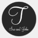 First Names and Last Initial White Monogram T Classic Round Sticker