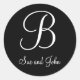 First Names Initial B Black and White Wedding Classic Round Sticker