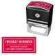 First notice self-inking stamp with red ink for any business, company, corporation, or home office. Bold design reading "friendly reminder, this account is overdue, your prompt attention is requested", ideal for stamping documents with your own colour choice.