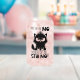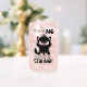 A funny, sarcastic black-and-white graphic design showcases a black cat with frazzled fur and a scowling expression. The black handwritten text says, "First of all, no. Second of all, still no!" Available on a wide variety of products, this design makes a perfect gift for cat lovers.