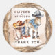 Spread gratitude and joy in perfect Western style with our 'First RODEO' Boy Cowboy 1st Birthday Party Classic Round Stickers! The perfect finishing touch to express your appreciation. Shop now and add a touch of sweetness to your thank-you favours!