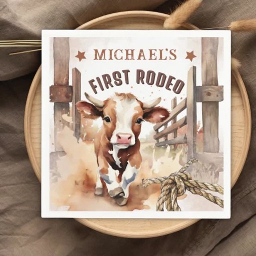 Saddle up for a wild-west celebration! 🎂 Our 'First RODEO | Wild West Bull Cowboy 1st Birthday Napkins' are a must-have for your little cowboy's big day! Round up the fun and order these adorable napkins to add a touch of rodeo flair to your party! 🌵🎉