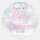 Designed to coordinate with our First Snowflakes baby shower collection. Gentle snowflakes fall across your baby shower details, set in elegant pink and charcoal grey text on a magical winter background, this chic baby shower sticker is ideal for sealing invitation envelopes and baby shower party favours.
