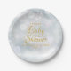 Gentle snowflakes fall across your details, set in elegant gold text on a magical winter background, this chic gender neutral baby shower, sprinkle or couples shower paper plate is ideal for your special event. Designed by Thisisnotme©