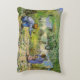 The cushion is small to medium sized. It can be washed. It is well constructed. The material used is pleasant and feels decent quality. It has a very slight plush feel which is good. It is well labelled and its care clearly stated. Theres nothing not to like about it. All in all a good item. The deduction of one star overall is due to long delays in delivery to the UK. It's not clear if this was due to Zazzle or somewhere else in the chain as I did not receive status updates of dispatch or progress. I cannot comment anymore on that other than to say that was our experience but it may not be the same for you. The printing was surprisingly close to what we were expecting. Its an art piece and on material so its hard to assess the precision of printing but it seems close to the original. The soft lines are reproductions of the original. The colour is a fair reflection of the painting. This was printed in the US and it looks like US quality. No issues.