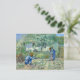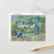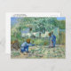 A fine art postcard with the post-impressionist painting by the Dutch artist Vincent van Gogh (1853-1890), First Steps after Millet. A landscape with a mother, father and baby tending to their garden with their baby taking his first steps.
