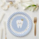First Tooth party decorations. Baby blue paper plate with cute tooth and stripes. Visit the shop to see all the First Tooth collection.