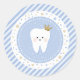 First Tooth party decorations. Baby blue stickers with cute tooth and stripes. Visit the shop to see all the First Tooth collection.