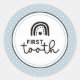 First tooth rainbows and white polka dots on blue background baby milestone Classic Round Sticker
