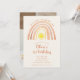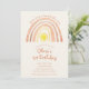 A cute first 1st birthday invitation, featuring a boho watercolor rainbow and sun, and a special photo on the reverse. Designed by Thisisnotme©