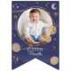 First Trip Around The Sun Monthly Photo Bunting Flags is a part of the Galaxy Birthday collection. This product features stars, planets, night sky, gold sparkles. Done mostly in purple & gold colours with decorative fonts. Explore more matching products in our store.