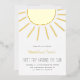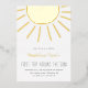 Featuring a trendy gold foil sun with choice of personalisation. Gold rainbow and your own photo on the back. Perfect for their first trip around the sun!