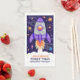 This boy's first birthday 'first trip around the sun' design features a purple and silver rocket blasting off into outer space with lots of stars and galaxies on a dark purple background. You can edit all of the text to suit any occassion. See the whole matching collection.