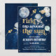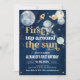 Blast off into a celestial celebration with this stellar "First Trip Around the Sun" birthday invitation. Featuring a charming outer space theme with planets, stars, and a hand-painted aesthetic, it is the perfect way to announce your little astronauts big milestone. This modern and whimsical design is easily customisable, ensuring your 1st birthday party details shine as bright as a supernova.