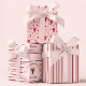This cute pink, red and white Valentine's Day wrapping paper sheet set features 3 unique designs: