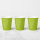 Green peridot colour wedding celebrating 1 year of love anniversary party paper cup. Celebrating 1 year of love, a simple heart stone effect line art graphic in white on a green background colour personalised cups. Customise with your own choice of names or relations, their anniversary dates. Other matching items are available. The first wedding anniversary is associated with the green gemstone peridot and the heart symbolises love. Original graphics and design by Sarah Trett for www.mylittleeden.com and
