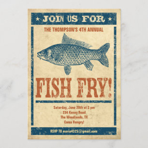 Rustic Fish Fry Graduation Backyard Cookout Party Invitation