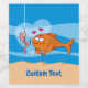Cartoon illustration of fish in love with the worm bait in hook. Custom text.