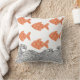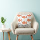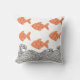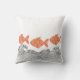 Fish and waves throw pillow. The fish are rendered in a soft terracotta orange and decorated with a delicate floral pattern, adding a whimsical, Japanese-inspired touch. The waves below are illustrated with fine black lines in a traditional woodblock style,