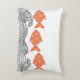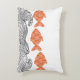 Fish and waves throw pillow. The fish are rendered in a soft terracotta orange and decorated with a delicate floral pattern, adding a whimsical, Japanese-inspired touch. The waves below are illustrated with fine black lines in a traditional woodblock style,