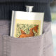 The product is a good size and came exactly as it was pictured. The lid is not attached to the flask, which could be dangerous on drunken nights... The print came out surprisingly well and looks very sharp. Would definitely recommend.