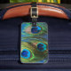 Three awesome peacock feathers. Amazing peafowl still life photography taken with a fish eye lens. With the blue background, the feathers look unique