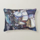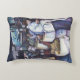 The cushion is small to medium sized. It can be washed. It is well constructed. The material used is pleasant and feels decent quality. It has a very slight plush feel which is good. It is well labelled and its care clearly stated. Theres nothing not to like about it. All in all a good item. The deduction of one star overall is due to long delays in delivery to the UK. It's not clear if this was due to Zazzle or somewhere else in the chain as I did not receive status updates of dispatch or progress. I cannot comment anymore on that other than to say that was our experience but it may not be the same for you. The printing was surprisingly close to what we were expecting. Its an art piece and on material so its hard to assess the precision of printing but it seems close to the original. The soft lines are reproductions of the original. The colour is a fair reflection of the painting. This was printed in the US and it looks like US quality. No issues.
