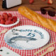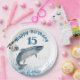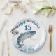 Big fish jumping out of splashing blue water with fishing pole for 15th birthday party.
