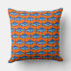 Fish Pattern - Navy Blue and Ice Blue on Orange Cushion