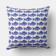Fish Pattern - Navy Blue and Pink on White Cushion