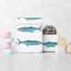 Fishes pattern wrapping paper printed with painterly oil pastel illustration of a mackerel on a white background. Artwork: Oil pastel on board. ©2014 Dominic A. White.