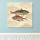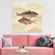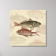 Antique fish engraving of red perch, or redfish - This fishing gift is based on an early coloured engraving by Mark Catesby (British, 1679-1749). The beautiful fish engraving is from "The Natural History of Carolina, Florida and the Bahama Islands", London, 1754 edition. The vintage fish engraving is titled "Perca rubra & C". The red perch is a common name of fish that refers to several species of fish. The Percua is actually the common Perch, a wonderful little game fish, generally living in fresh water. The saltwater dwelling red drum is also often referred to as a redfish or red perch. The vintage fish image of red perch shows two fish swimming past each other, the bottom fish is red while the top perch is grey and red. In many of our red perch fish gifts, there is a background showing light images of fish swimming by, and capped with a touch of calligraphy that talks about red perch.