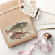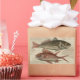 Antique fish engraving of red perch, or redfish - This fishing gift is based on an early coloured engraving by Mark Catesby (British, 1679-1749). The beautiful fish engraving is from "The Natural History of Carolina, Florida and the Bahama Islands", London, 1754 edition. The vintage fish engraving is titled "Perca rubra & C". The red perch is a common name of fish that refers to several species of fish. The Percua is actually the common Perch, a wonderful little game fish, generally living in fresh water. The saltwater dwelling red drum is also often referred to as a redfish or red perch. The vintage fish image of red perch shows two fish swimming past each other, the bottom fish is red while the top perch is grey and red. In many of our red perch fish gifts, there is a background showing light images of fish swimming by, and capped with a touch of calligraphy that talks about red perch.