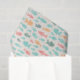 This cute seamless pattern design has a sea of swimming fish with a cut-out modern look in shades of teal, pink, blue and sunny yellow-orange. The background is a light sandy-beige. Conjure up beach vibes with this fun nautical theme.