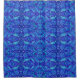 Shower curtain featuring whimsical arabesque pattern, stylised fish, waves, nets and curves, bohemian / ethnic / hippie / vintage style, hand drawn pastel texture. Colour palette: Blue, Azure, Turquoise, Purple, Violet. © Julia Khoroshikh, 2022 #bohemian #oriental #ethnicpattern #arabesque #bohemianpattern #bathroomdecor #bathroom #zazzlemade