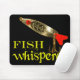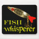 Funny fishing mousepad for all fishermen and fisherwomen. Fish Whisperer in text with a full colour fishing lure near the top.