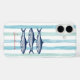 This stylish coastal themed fisherman core aesthetic iphone case features 3 hand drawn vintage style sardines on a background of aqua blue and teal stripes to add a preppy nautical vibe.