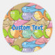 Seamless pattern background of colourful happy, smiling fish cartoons. Custom text.
