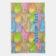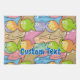 Seamless pattern background of colourful happy, smiling fish cartoons. Custom text.