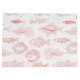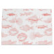 Hand - drawn vector pattern with various fishes in Living Coral colour and white background.